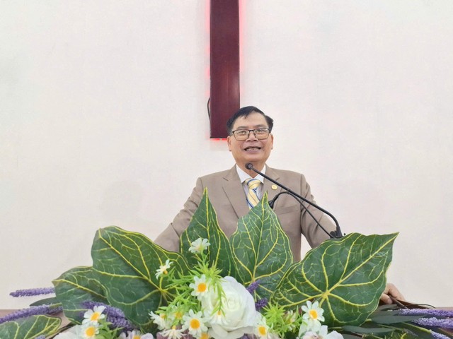 Mục sư Nguyễn Công Nghĩa, Trưởng Ban Đại diện, thông báo công việc trong tỉnh Khánh Hòa