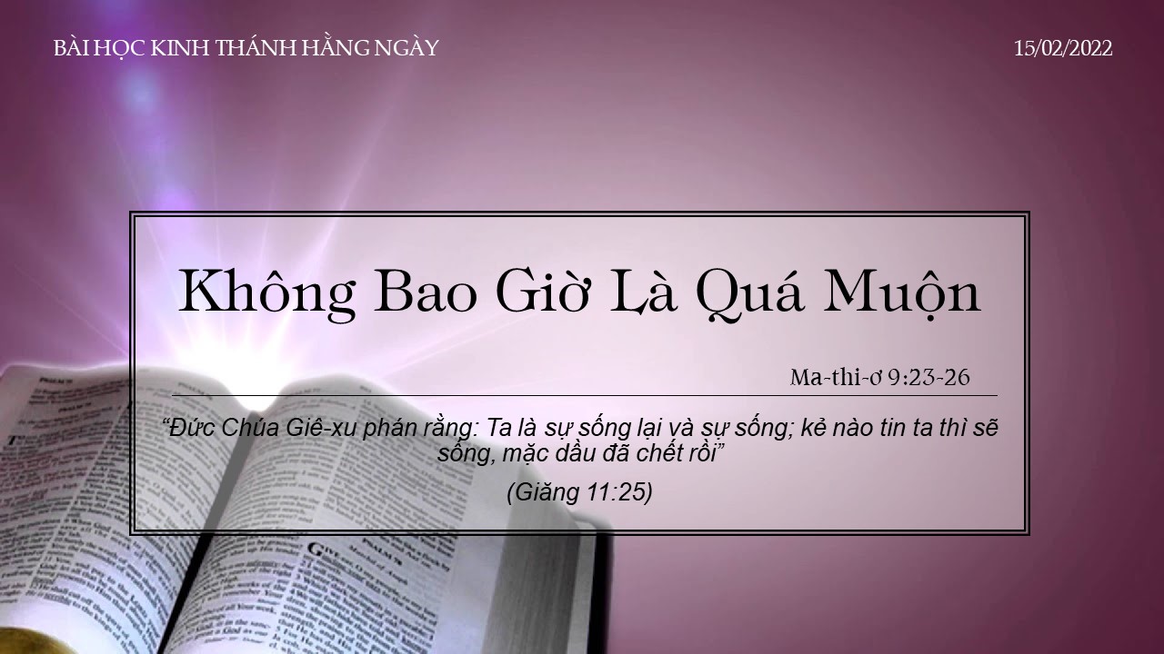 Không Bao Giờ Là Quá Muộn – 15/2/2022