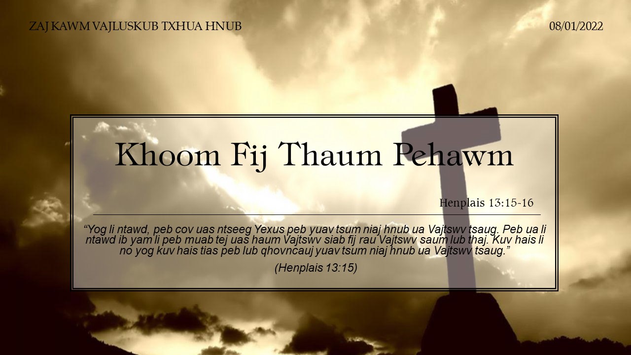 Khoom Fij Thaum Pehawm – 8/1/2022