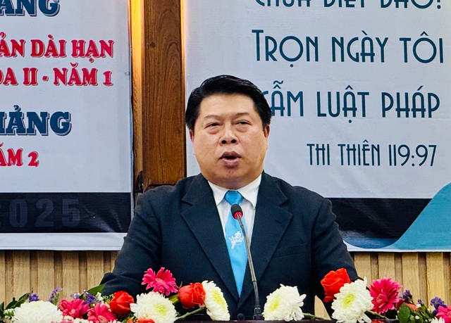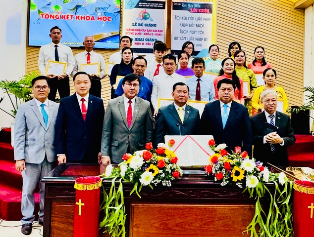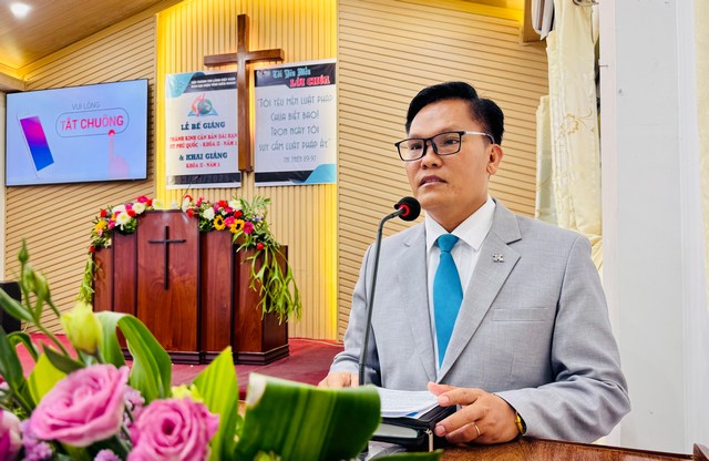 MS Dương Hữu Thắng, Trưởng Ban Đại diện Tin Lành tỉnh Kiên Giang, đã long trọng tuyên bố bế giảng Thánh Kinh Căn Bản Dài hạn khoá II năm 1 và khai giảng năm 2.