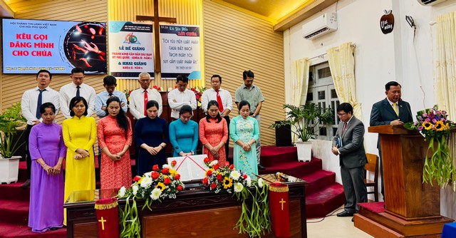 Hiện diện trong chương trình lễ có: Mục sư Nguyễn Bình Tín, Uỷ viên Tổng Liên Hội – Mục vụ tỉnh Kiên Giang; Ban Đại diện Tin Lành tỉnh; quý tôi tớ Chúa, các Chấp sự, cùng các khoá sinh Thánh Kinh Căn Bản.