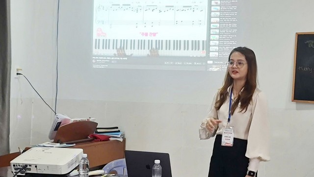 Cô Hoàng Nhu phụ trách nhóm Âm nhạc