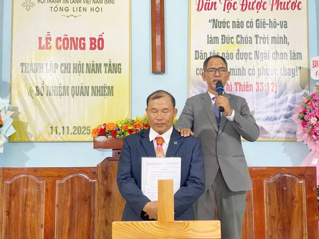 HTTLVN.ORG – Vào lúc 09g ngày 11/11/2025, tại nhà thờ Tin Lành Năm Tầng (xã Đăk Mil, tỉnh Lâm Đồng), trong bầu không khí trang nghiêm và đầy ơn phước, Hội Thánh Chúa đã long trọng cử hành Lễ Công bố Thành lập Chi Hội Năm Tầng và Bổ nhiệm Mục sư Nhiệm chức Lý Văn Khìn làm Quản nhiệm Chi Hội.