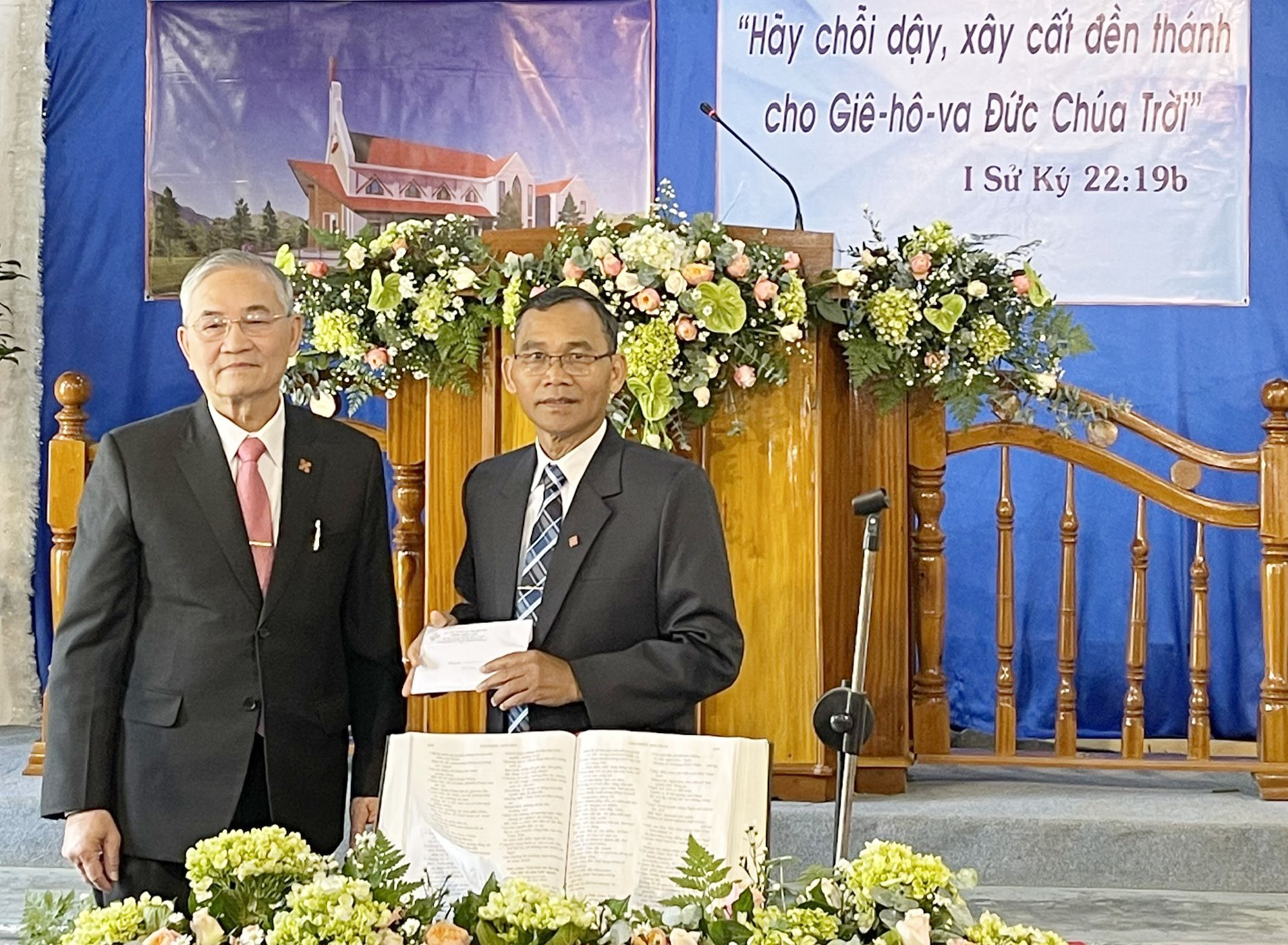Trang chủ Lâm Đồng: Lễ Khởi Công Xây Dựng Nhà Thờ Hamasing 13. MS. Bùi Phụng đại diện Tổng Liên hội có lời chúc mừng.