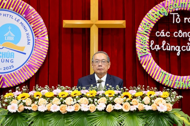 HTTLVN.ORG – Vào lúc 9g ngày 10/10/2025, con dân Chúa tại Chi Hội Tin Lành Lê Minh Xuân hân hoan nhóm lại trong lễ Cảm tạ Chúa Kỷ niệm 20 năm Thành lập Hội Thánh (2005–2025). Chương trình được long trọng tổ chức tại cơ sở Hội Thánh – Ấp 19, xã Bình Lợi, TP. Hồ Chí Minh, với sự tham dự của gần 100 quý tôi con Chúa, cùng đại diện chính quyền xã Bình Lợi và Ấp 19.