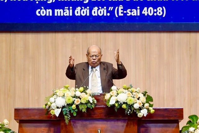 Nương trên Lời Chúa trong Kinh Thánh Ê-sai 40:6-8 và 1 Phi-e-rơ 1:22-25, Mục sư Thái Phước Trường, Hội trưởng HTTLVN, công bố Sứ điệp Cảm tạ, nhấn mạnh, chưa có một cuốn sách nào có giá trị tồn tại và không thay đổi dù trải qua bất cứ hoàn cảnh nào như Kinh Thánh, vì vậy chúng ta cần tiếp tục tin cậy và trung tín dùng Kinh Thánh trong việc rao truyền Lời Chúa.