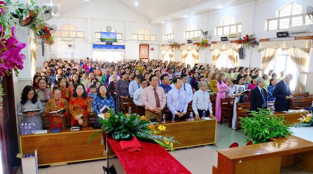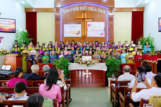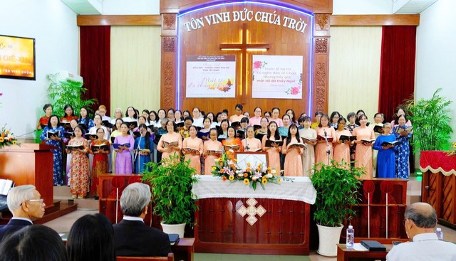 Hội Thánh Tin Lành Cần Giuộc vui mừng đón tiếp gần 400 quý chị em trong các ban Phụ nữ đến từ các Hội Thánh trong khu vực về tham dự chương trình.