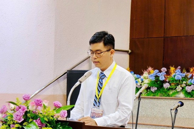 Khoá sinh Thủ khoa Bùi Đức Minh Bảo phát biểu cảm tưởng