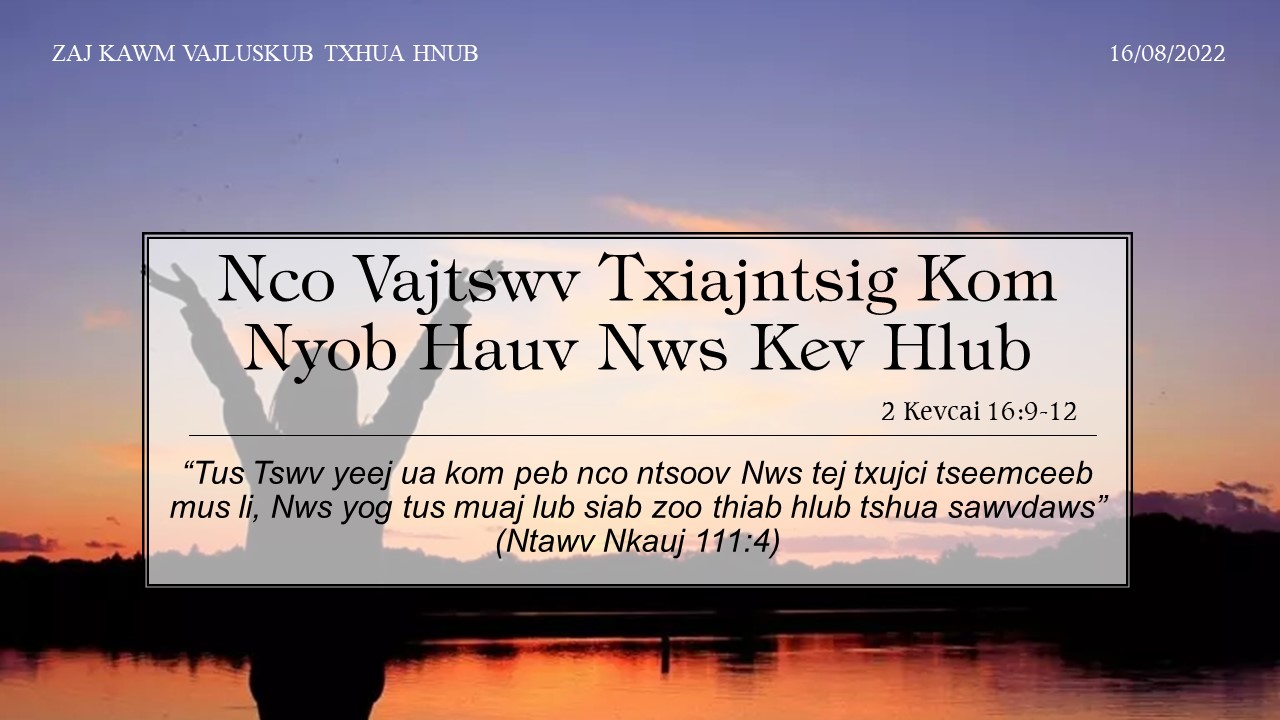 Nco Vajtswv Txiajntsig Kom Nyob Hauv Nws Kev Hlub – 16/8/2022