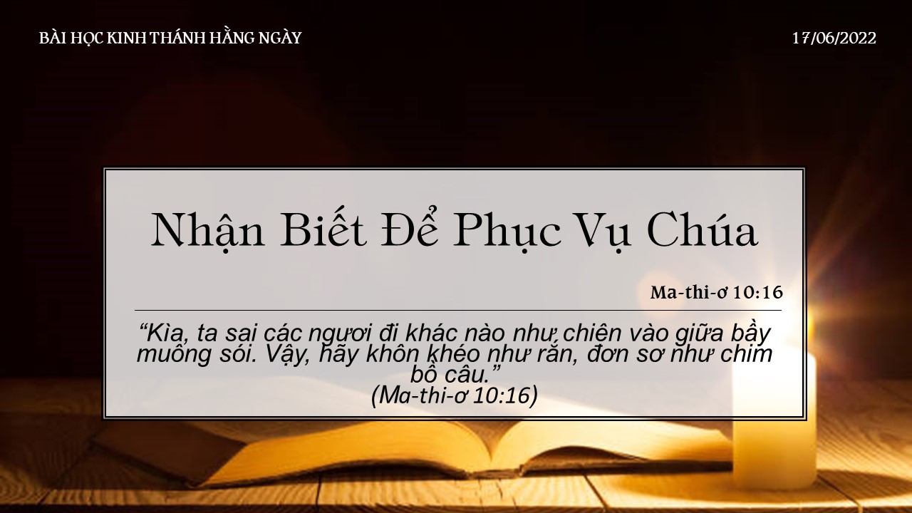 Nhận Biết Để Phục Vụ Chúa – 17/6/2022