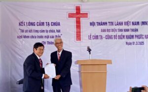 HTTLVN.ORG – Vào lúc 9g, ngày 01/03/2025 vừa qua, Lễ Cảm tạ – Ra mắt Điểm Nhóm Phước Nam của các tín hữu người Chăm tại tỉnh Ninh Thuận đã được diễn ra trong sự vui mừng cảm tạ Chúa. Đây là Điểm Nhóm Tin Lành đầu tiên của người Chăm được đăng ký sinh hoạt tôn giáo tập trung tại thôn Phước Lập Tam Lang, xã Phước Nam, huyện Thuận Nam, tỉnh Ninh Thuận.