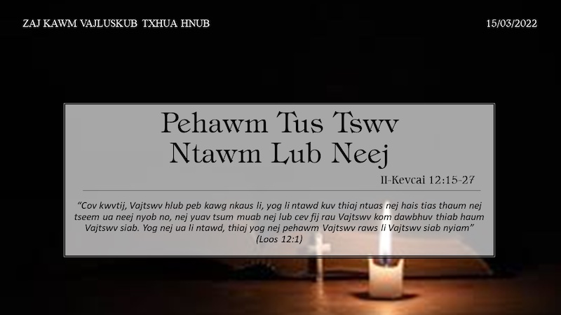 Pehawm Tus Tswv Ntawm Lub Neej – 15/3/2022