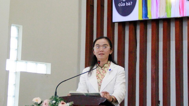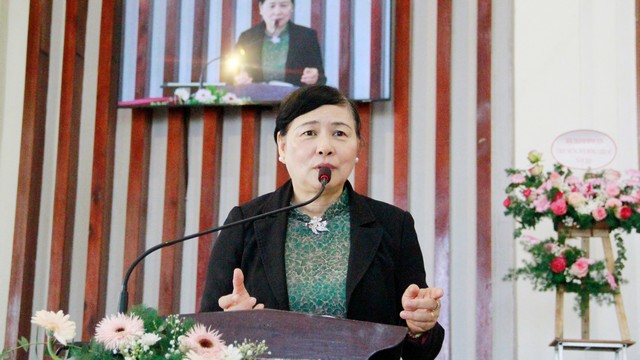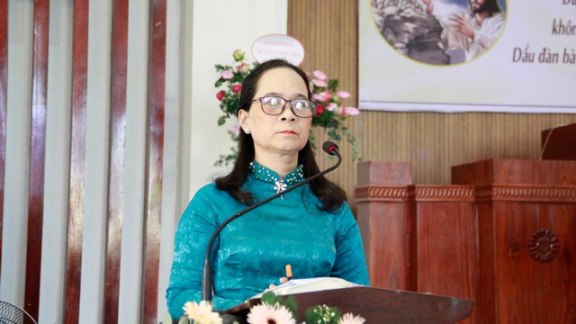 Bà Mục sư Võ Đình Quang, đại diện Ban Nữ giới tỉnh, có lời cảm ơn