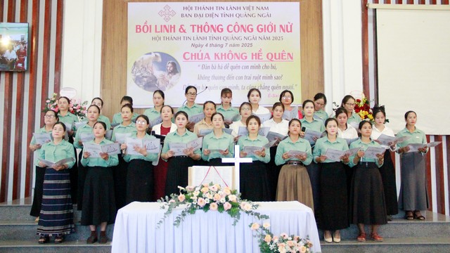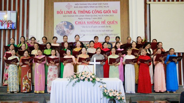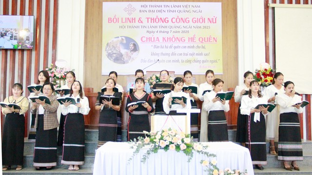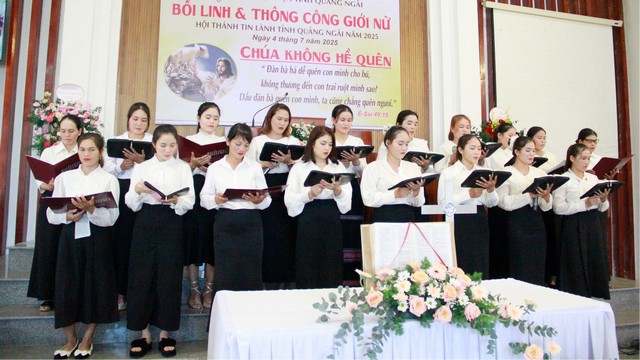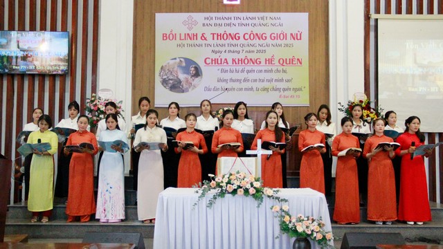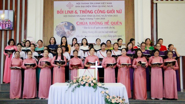 HTTLVN.ORG – Ngày 04/07/2025, vào lúc 8g, đã diễn ra chương trình bồi linh và thông công Giới nữ Tin Lành tại nhà thờ Tin Lành Bình Sơn, với chủ đề “Chúa Không Hề Quên”, nương trên câu Kinh Thánh Ê-sai 49:15 “Đàn bà há dễ quên con mình cho bú, không thương đến con trai ruột mình sao? Dầu đàn bà quên con mình, ta cũng chẳng quên ngươi”.