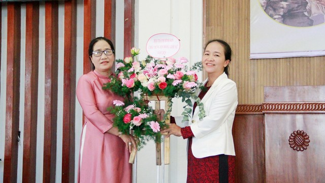Đại diện phụ nữ tỉnh tặng lặng hoa cho phụ nữ HT Bình Sơn