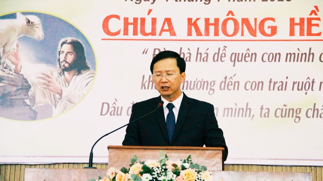 MS Nguyễn Thế Vinh, Trưởng ban Đại diện Tin Lành tỉnh, cầu nguyện khai lễ