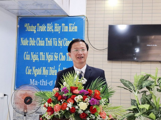 Mục sư Nguyễn Thế Vinh thông báo những công việc chung của tỉnh trong thời gian tới, cùng với lời khích lệ quý đầy tớ Chúa hãy quan tâm và chia sẻ với anh em mình khi có nhu cầu