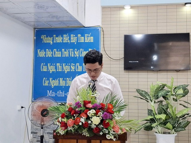 Mục sư Trần Đình thông báo thông tin từ Giáo hội và nhắc nhở công tác Mục vụ