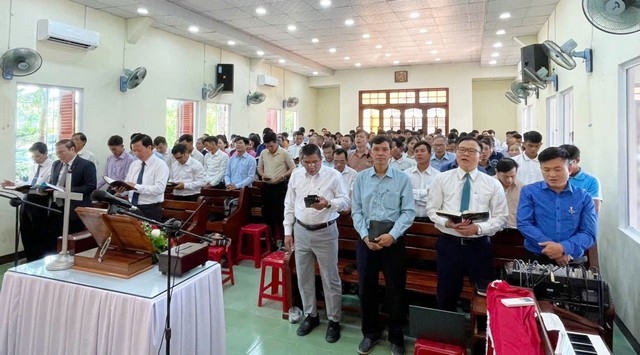 Đến dự có: Mục sư Lê Hoàng Phúc, Trưởng Uỷ ban Thanh Thiếu Nhi TLH; Mục sư Nguyễn Thế Vinh, Trưởng ban và quý Mục sư trong Ban Đại diện Tin Lành tỉnh; quý giáo phẩm; cùng 150 chấp sự và giáo viên Trường Chúa nhật của các Hội Thánh trong tỉnh cùng tham dự.