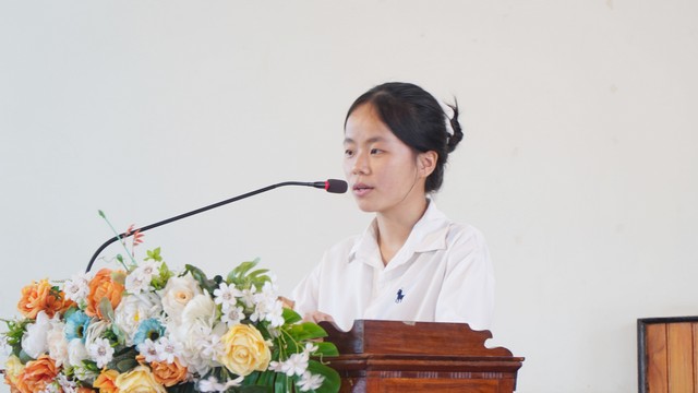 Em Bùi Linh Nguyện, đại diện các khóa sinh, phát biểu cảm tưởng