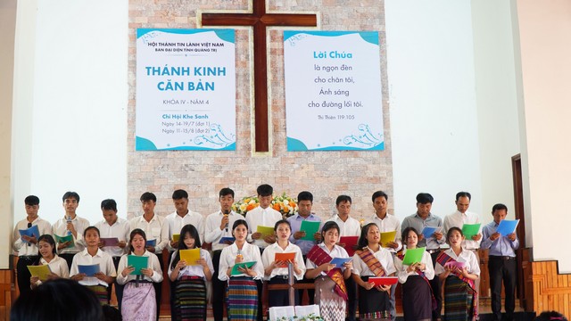 HTTLVN.ORG – Lúc 15g ngày 14/8/2025, tại nhà thờ Tin Lành Khe Sanh, thôn Liên Hòa, xã Tân Lập, tỉnh Quảng Trị, Ban Đại diện (BĐD) Tin Lành tỉnh Quảng Trị đã tổ chức chương trình Bế giảng lớp Thánh Kinh Căn Bản (TKCB) Khoá IV – Năm 4.