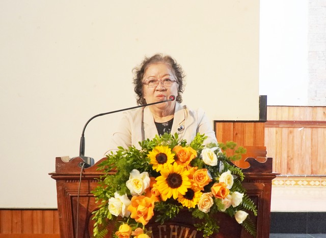 Bà Mục sư Châu Văn An, Trưởng ban Phụ nữ Tin Lành tỉnh, có lời chào mừng