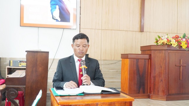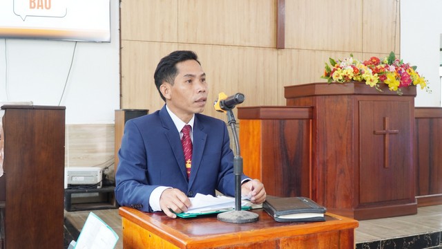 Mục sư Châu Văn An, Trưởng BĐD, thông báo các công việc chung của Ban Đại diện và của tỉnh