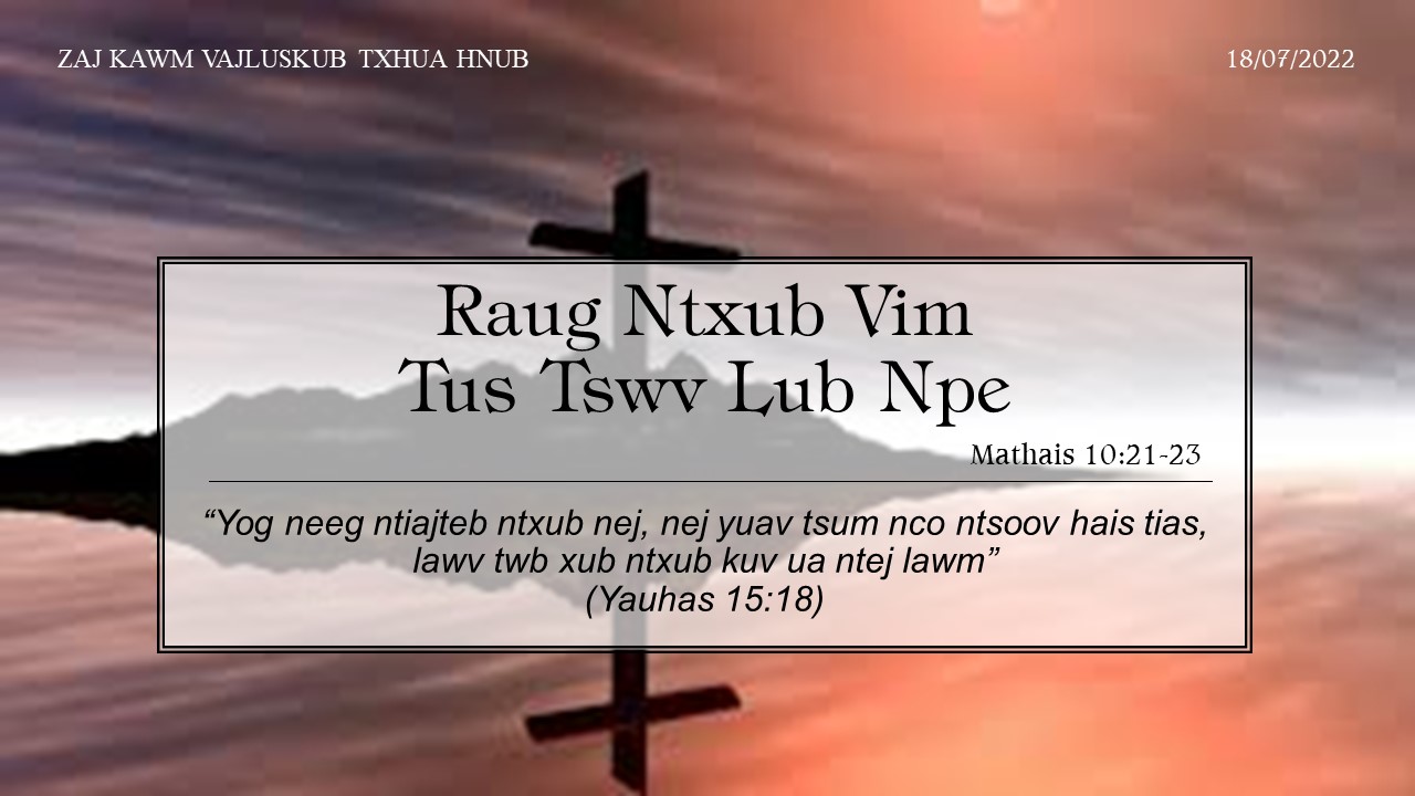 Raug Ntxub Vim Tus Tswv Lub Npe – 18/7/2022