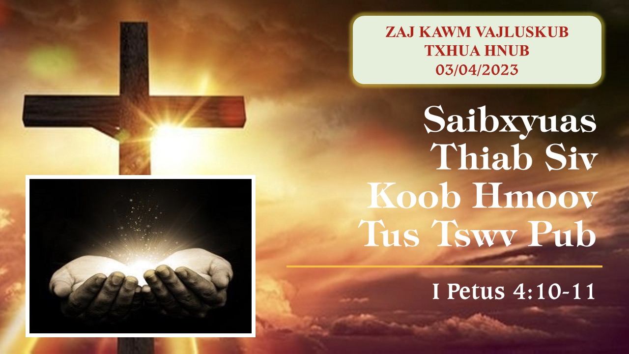 Saibxyuas Thiab Siv Koob Hmoov Tus Tswv Pub – 3/4/2023