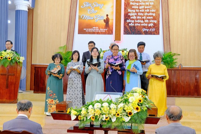 Buổi sáng, Mục sư Nguyễn Hữu Bình rao giảng Lời Chúa trên nền tảng Kinh Thánh Giăng 4:35-38, chủ đề “Sẵn sàng cho Mùa gặt”. Hội đồng nhận mạng lệnh của Chúa là rao giảng Phúc âm cho đến lúc Ngài đến. Đây là sứ mạng của Đức Chúa Trời ủy thác cho tất cả con dân Ngài. Chúng ta cần có tinh thần sẵn sàng cho mùa gặt khi nhận thức cơ hội, nhận thấy nhu cầu, nhận biết mùa gặt đã đến rồi. Mỗi con dân Chúa cần cam kết cá nhân, đáp ứng tiếng gọi của Chúa để bước vào đồng lúa thuộc linh chín vàng. Ngước mắt lên, tiếp tục bước để gặt những bó lúa về cho Nhà Chúa, gặt hái những linh hồn cho Ngài, mở mang vương quốc Đức Chúa Trời trên đất.