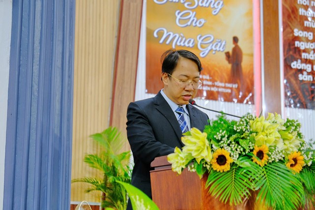 Mục sư Trần Thanh Dũng, Trưởng Ban Đại diện Tin Lành tỉnh Tây Ninh, tuyên bố khai mạc và cầu nguyện khai lễ