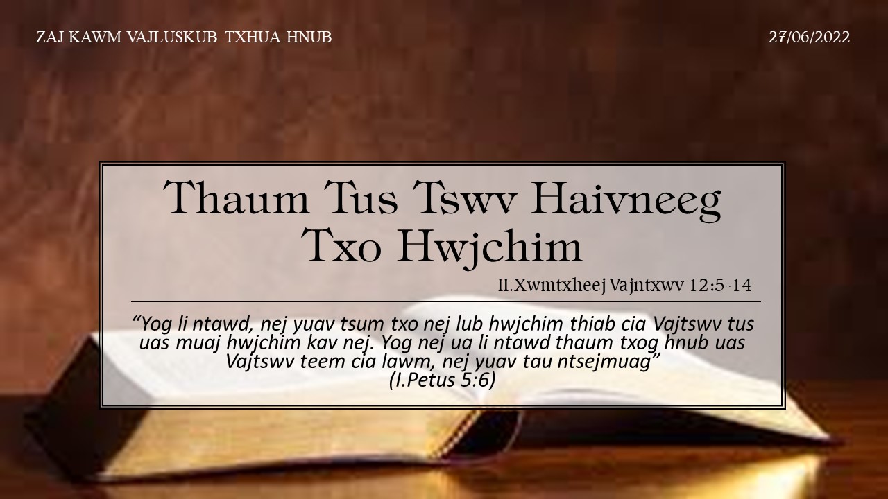 Thaum Tus Tswv Haivneeg Txo Hwjchim – 27/6/2022