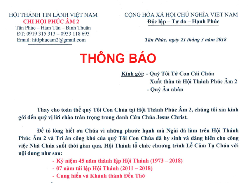 Thông Báo Truyền Hình Trực Tuyến: Chương Trình Truyền Giảng “ƠN TRỜI” Tại Nhà Thờ Tin Lành PHÚC ÂM 2