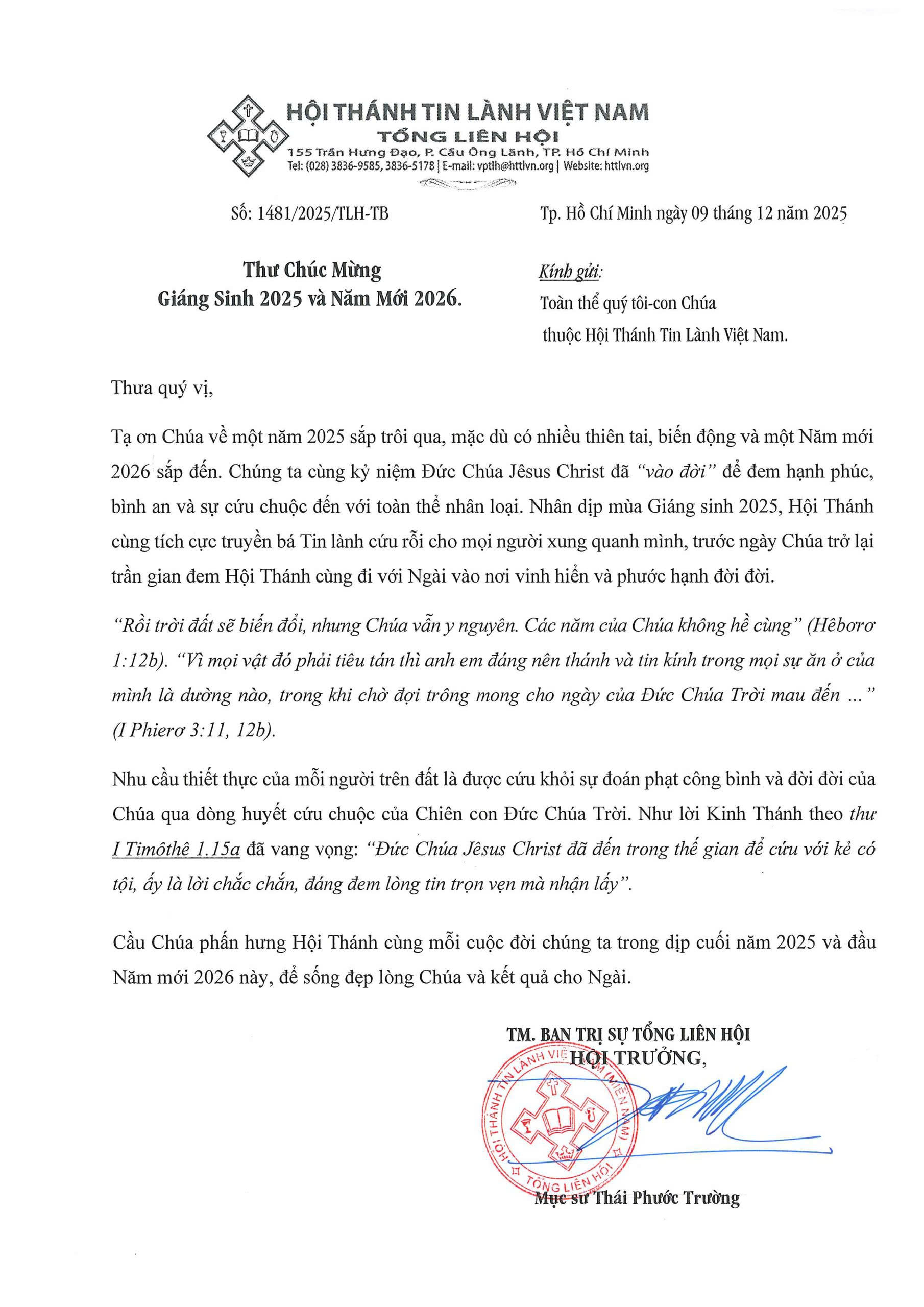 Thư Chúc Mừng Giáng Sinh 2025 và Năm Mới 2026