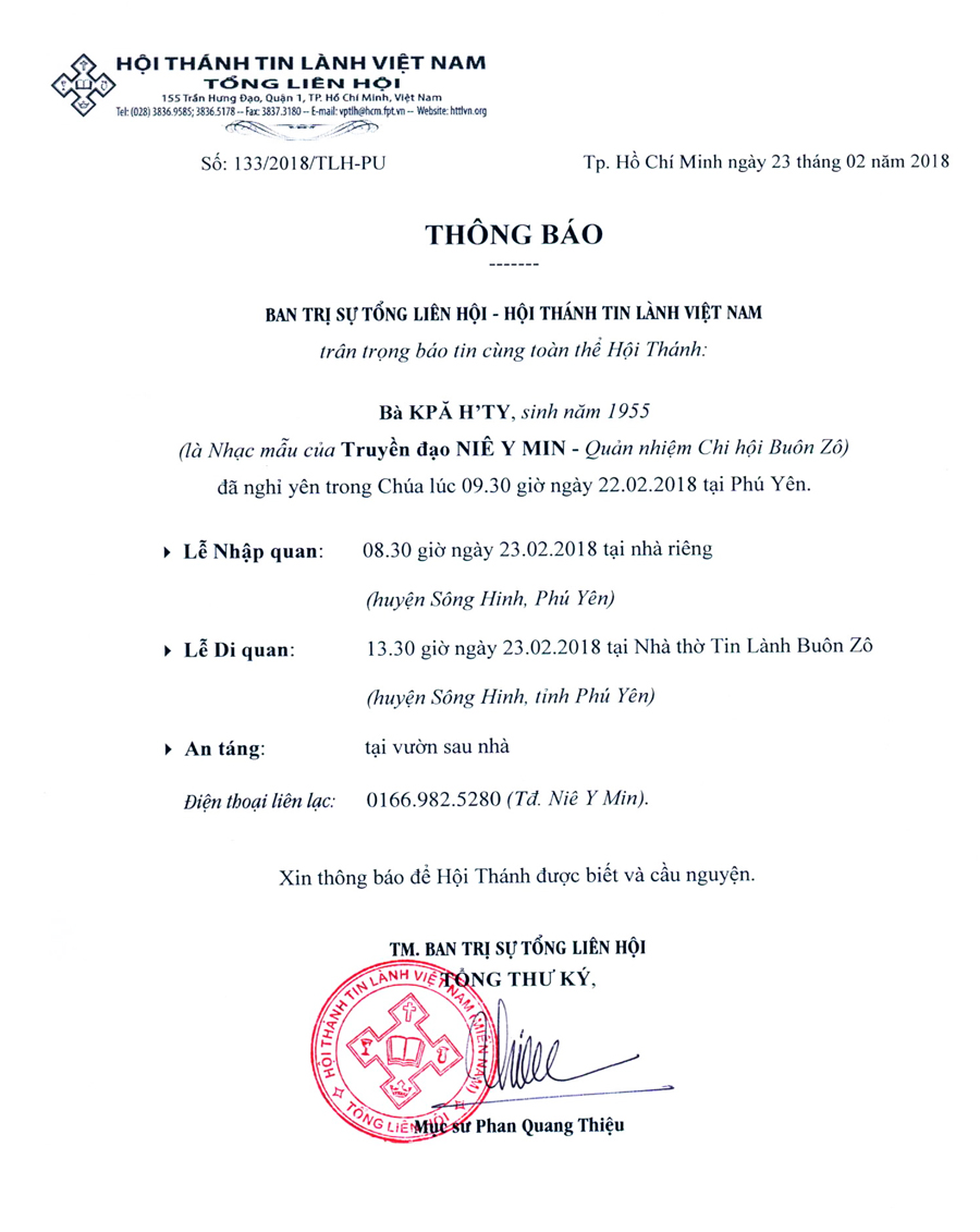 Thư Phân Ưu Cùng Tang Quyến Bà Kpă H’Ty (Nhạc mẫu TĐ Niê Y Min)