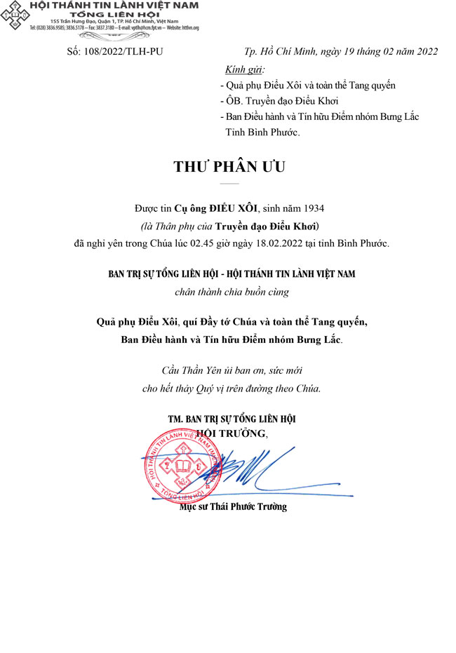 Thư Phân Ưu Cùng Tang Quyến Cụ Ông Điểu Xôi