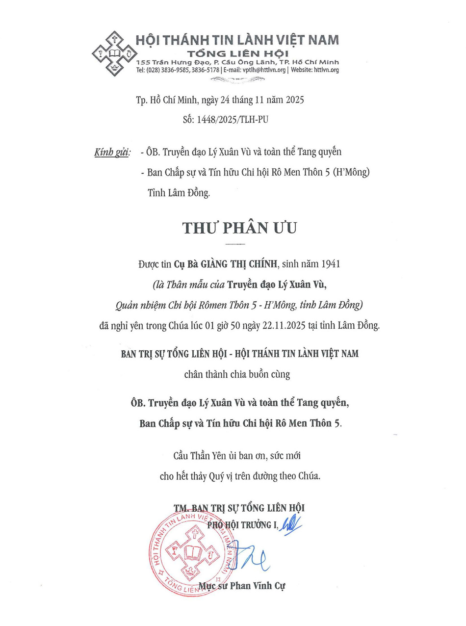 Thư Phân Ưu Cùng Tang Quyến Của Cụ Bà H PLUAT KPĂ