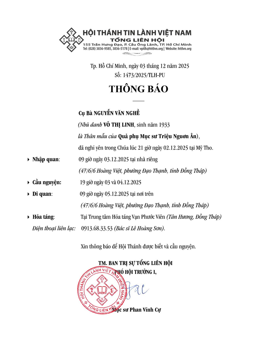 Bài trướcCà Mau: Hiệp Nguyện Giáo Phẩm, Chấp sự, Nhân sự tháng 12/2025