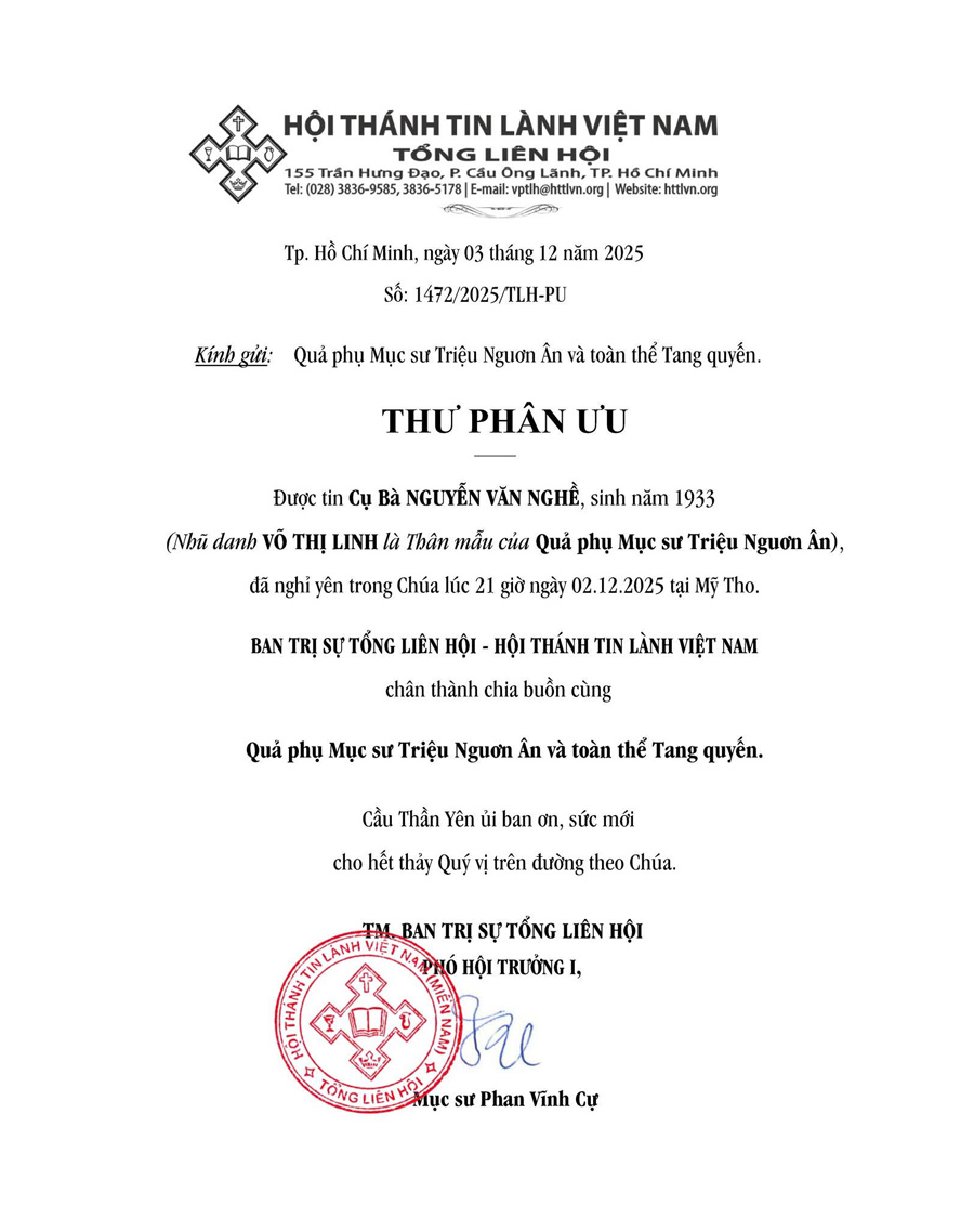 Thư Phân Ưu Cùng Tang Quyến Của Cụ Bà NGUYỄN VĂN NGHỀ