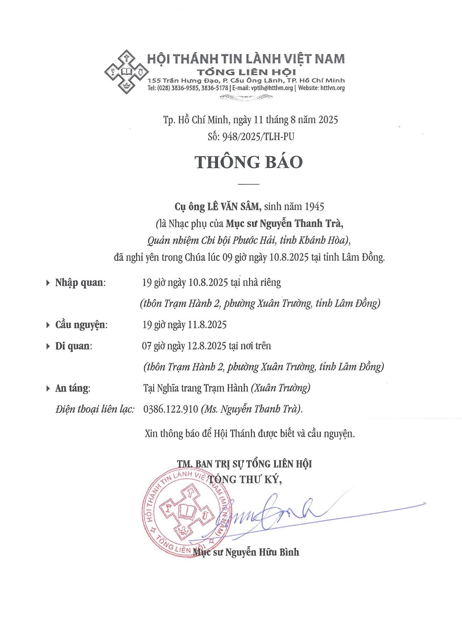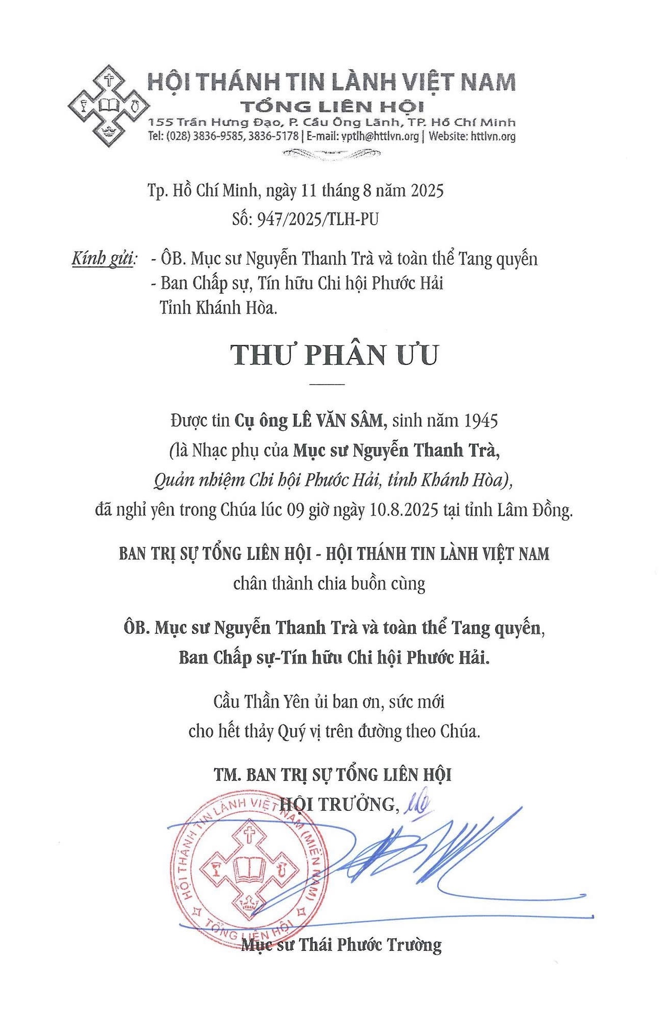 Thư Phân Ưu Cùng Tang Quyến Của Cụ Ông LÊ VĂN SÂM