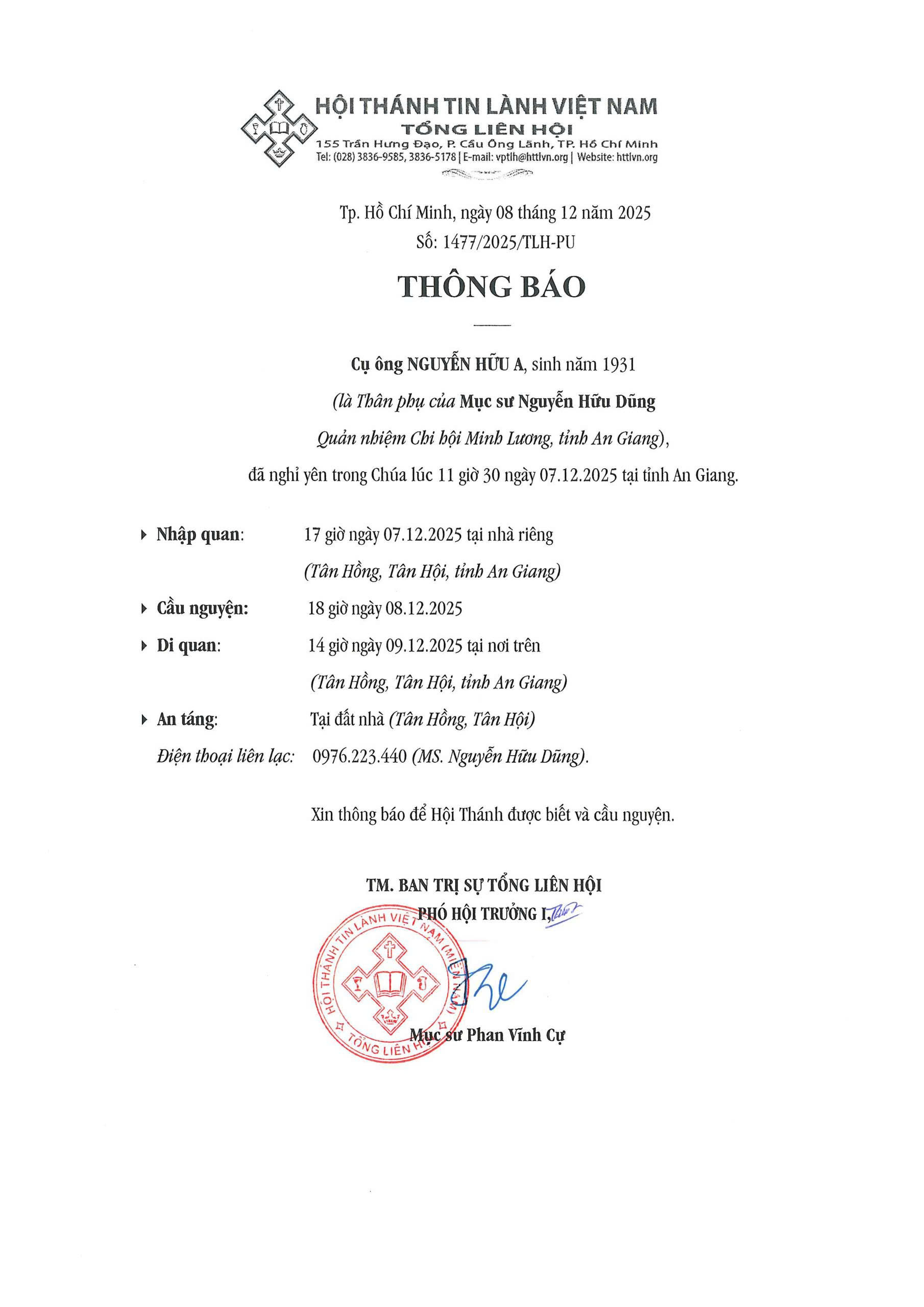 Quảng Trị: Hiệp nguyện Định kỳ Tháng 12/2025