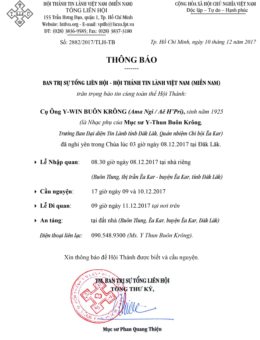 Thư Phân Ưu Cùng Tang Quyến Của Cụ Ông Y Win Buôn Krông (Ama Ngi)