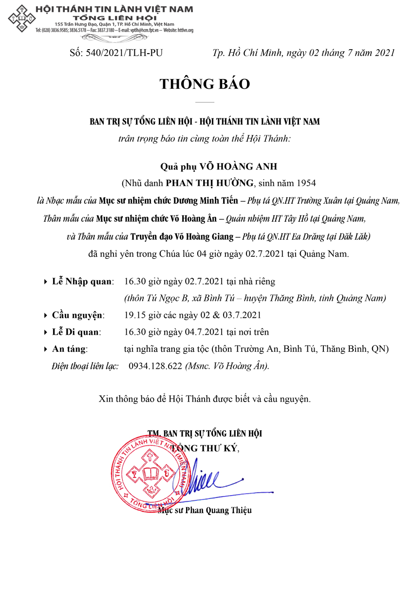 Thư Phân Ưu Cùng Tang Quyến Quả Phụ Võ Hoàng Anh