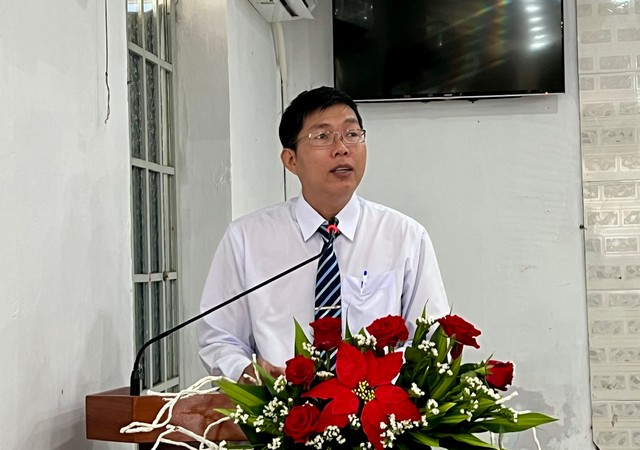 Mục sư Nguyễn Hiền Triết, Quản nhiệm Chi Hội Chợ Gạo, công bố sứ điệp Lời Chúa