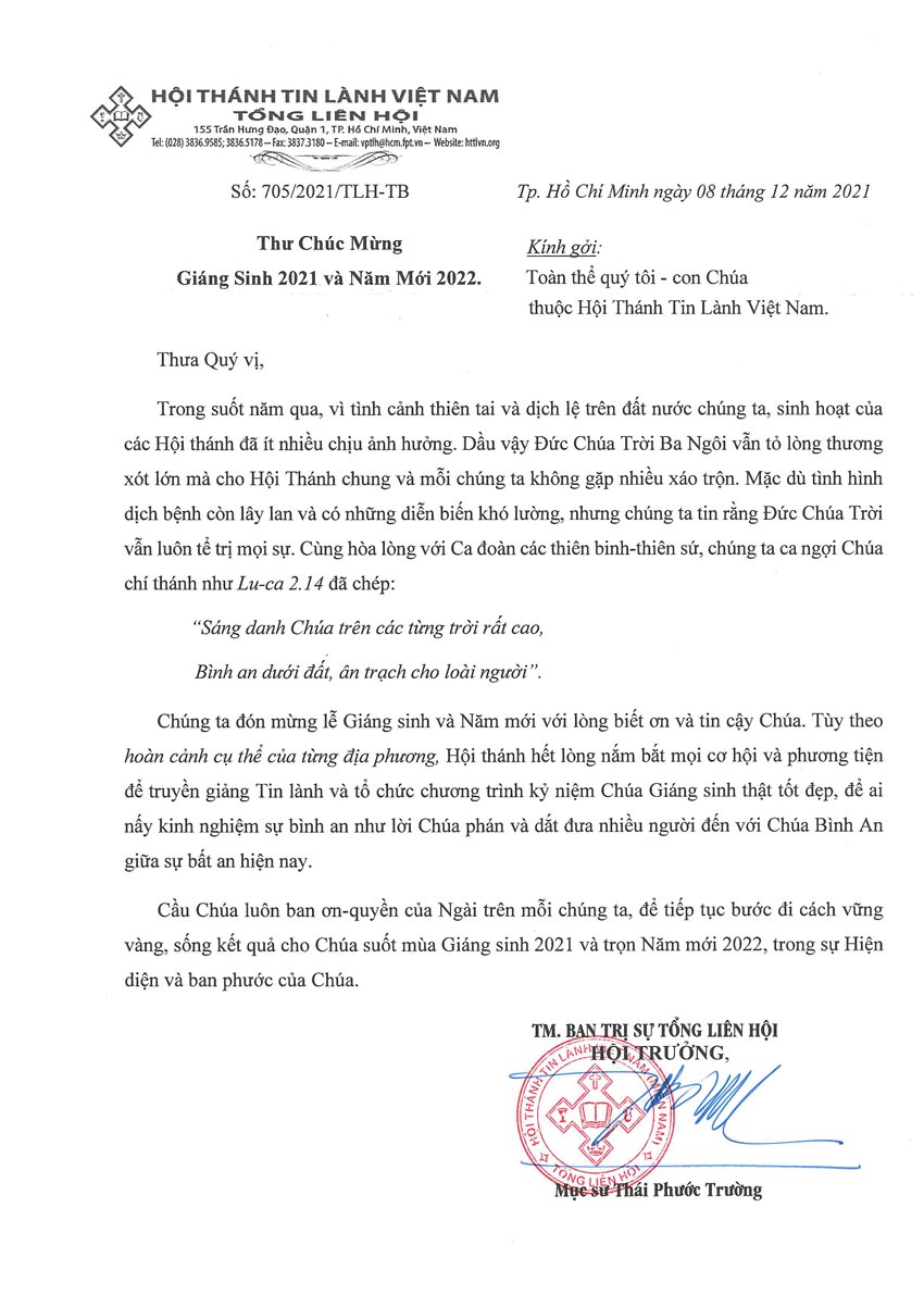Tổng Liên Hội: Thư Chúc Mừng Giáng Sinh 2021 và Năm Mới 2022