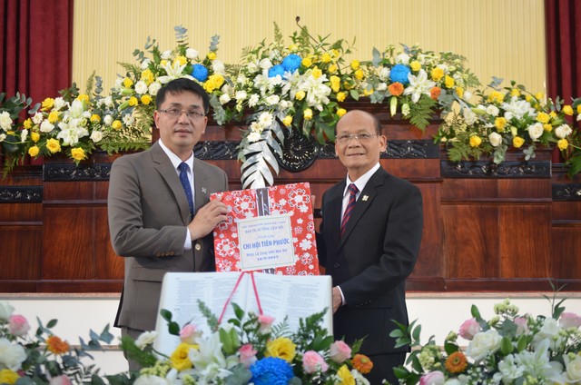 Mục sư Nguyễn Hữu Bình, đại diện Hội đồng Quản trị Sản nghiệp HTTLVN, tiếp nhận cơ sở nhà thờ Tin Lành Tiên Phước vào tài sản chung của HTTLVN