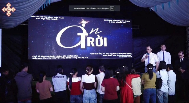 Mục sư Bùi Xuân Cẩm, Quản nhiệm Chi Hội Tiên Phước, chào mừng và hướng dẫn chương trình