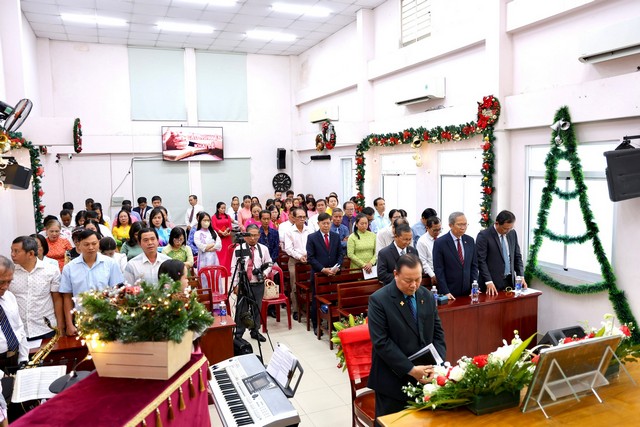Hiện diện có: Mục sư Võ Đông Thu, UV TLH – Mục vụ TP. HCM, là Chủ lễ và Diễn giả; Mục sư Phạm Trọng Huy – Phó Chủ tịch Hội đồng Giáo phẩm; Mục sư Nguyễn Văn Thiện, UV BĐD TL TP.HCM; Chấp sự các Hội Thánh trong khu vực lân cận; đại diện Chính quyền địa phương; cùng toàn thể con dân Chúa trong Hội Thánh.