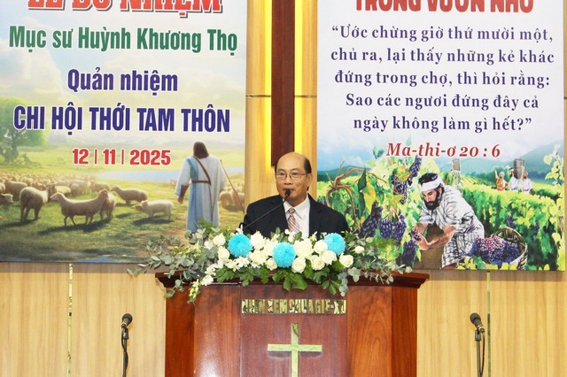 HTTLVN.ORG – Vào lúc 9g sáng 12/11/2025, Tổng Liên Hội HTTLVN cử hành Lễ Bổ nhiệm Mục sư Huỳnh Khương Thọ làm Quản nhiệm Chi Hội Thới Tam Thôn. Buổi lễ diễn ra hết sức long trọng tại cơ sở nhà Chúa, 84/3p Phạm Thị Giây, Ấp 63, xã Đông Thạnh, TP. HCM, với khoảng 160 tôi con Chúa tham dự.