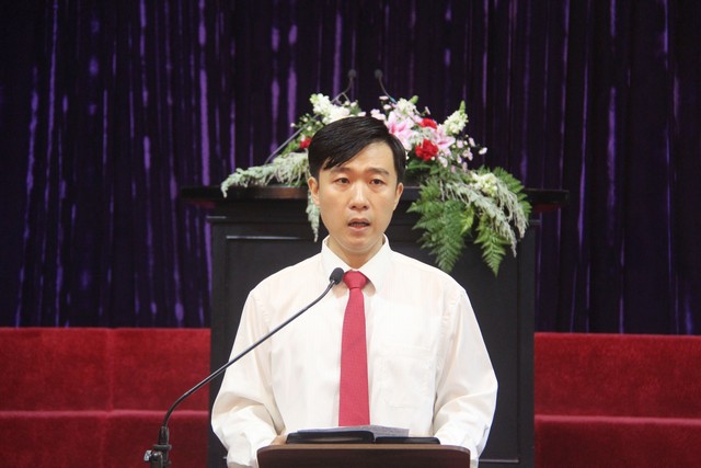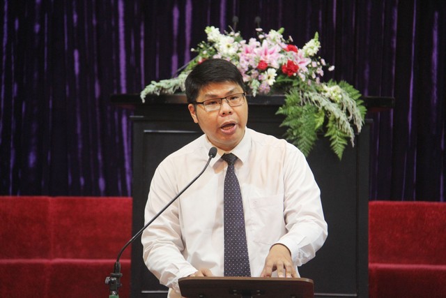 Mục sư Nguyễn Ngọc Tốt, Trưởng Ban Đại diện Tin Lành Thành phố, thông báo công việc Chúa